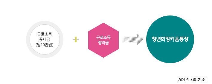 매월 근로자 본인의 근로·사업소득 발생시 본인의 적립금없음 근로소득공제금 10만원 + 사업소득금액에 따른 근로소득장려금을 적립해주지 않는 청년희망키움통장이라고 합니다 이는 국가에서 노동에 임하는 저소득 청년들의 안정적인 삶을 지원하는 만든 사업입니다 매달 근로수입으로 따로 저축하지 않아도 매월 10만원씩 근로소득장려금까지 적립해 줍니다.