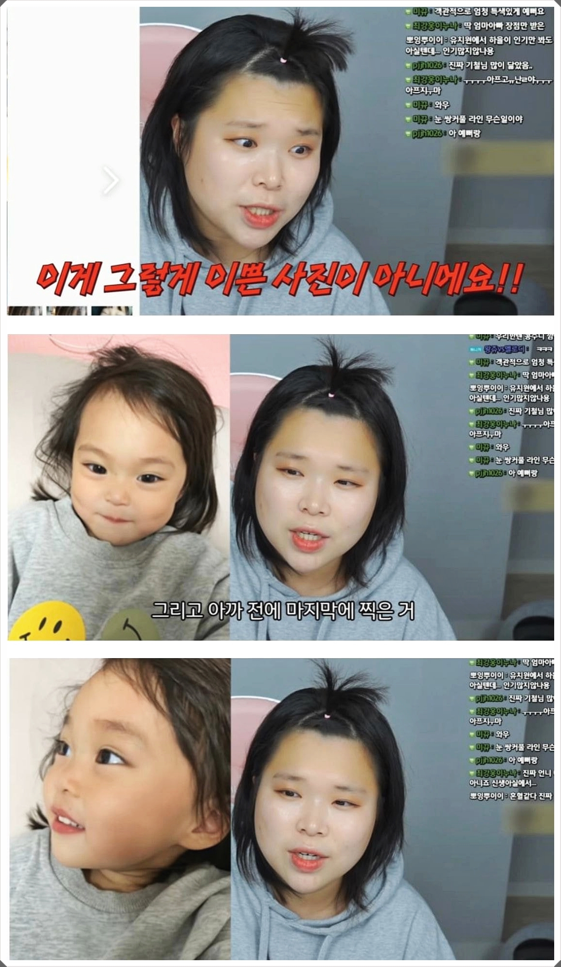 이에 왕쥬는 왕쥬 딸이 하는 행동이나, 사진이 아닌 실제 모든 모습을 봐서, 그래서 그런지 모르겠지만, "이렇게 이쁘지는 않다"라고 하였고, "자신의 딸인데 이렇게 얘기를 해도 되는지에 대해서 말을 하였습니다. 그러면서 덧붙여 얘기를 하는데, 이게 그렇게 이쁜 사진이 아니라고 하면서, 시청자들에게 강력하게 얘기를 하였습니다.