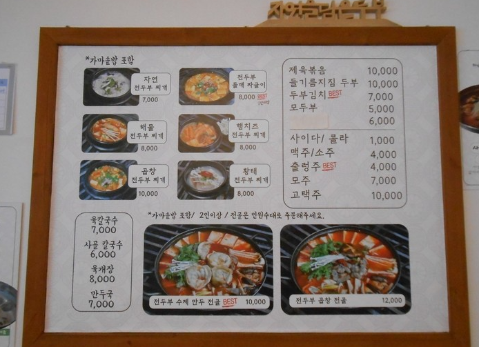 - 전두부 들깨 짜글이 8,000원